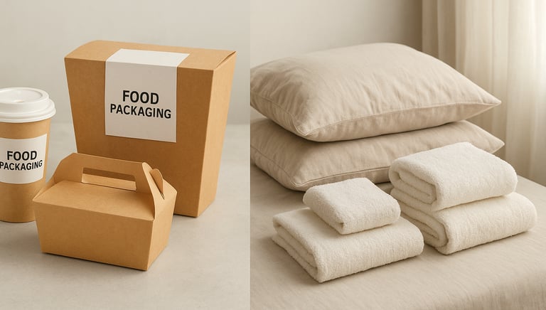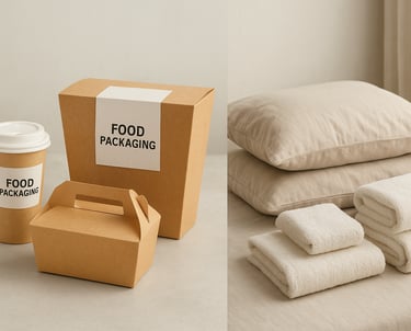 Nous proposons des emballages alimentaires personnalisés et des textiles pour la maison, incluant linge de lit, serviettes, peignoirs, ainsi que des matières premières textiles de haute qualité.